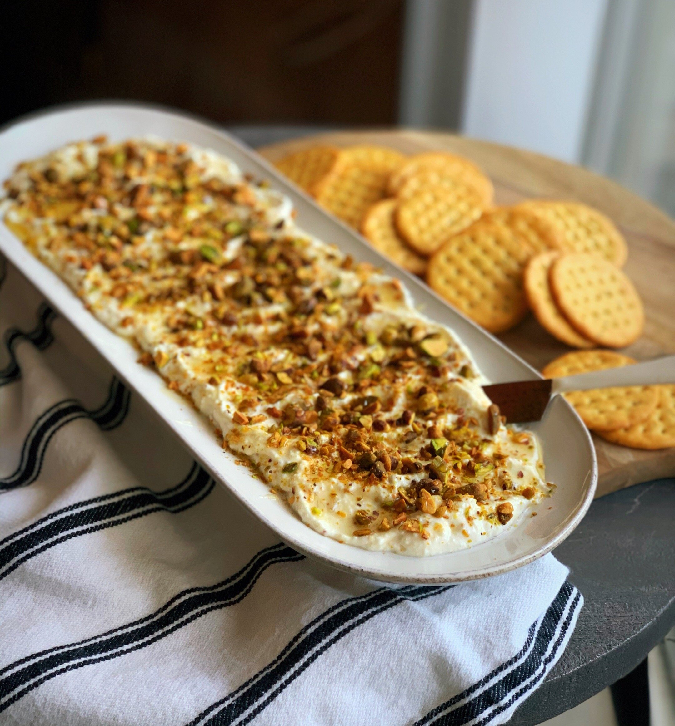 Transfer mixture to a serving dish and spread with a spatula (just enough to make an even layer).